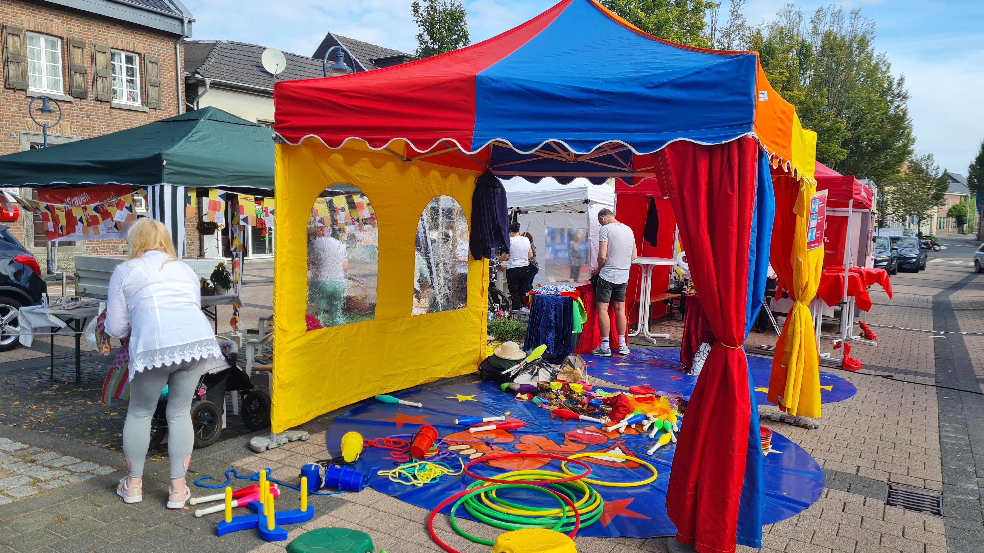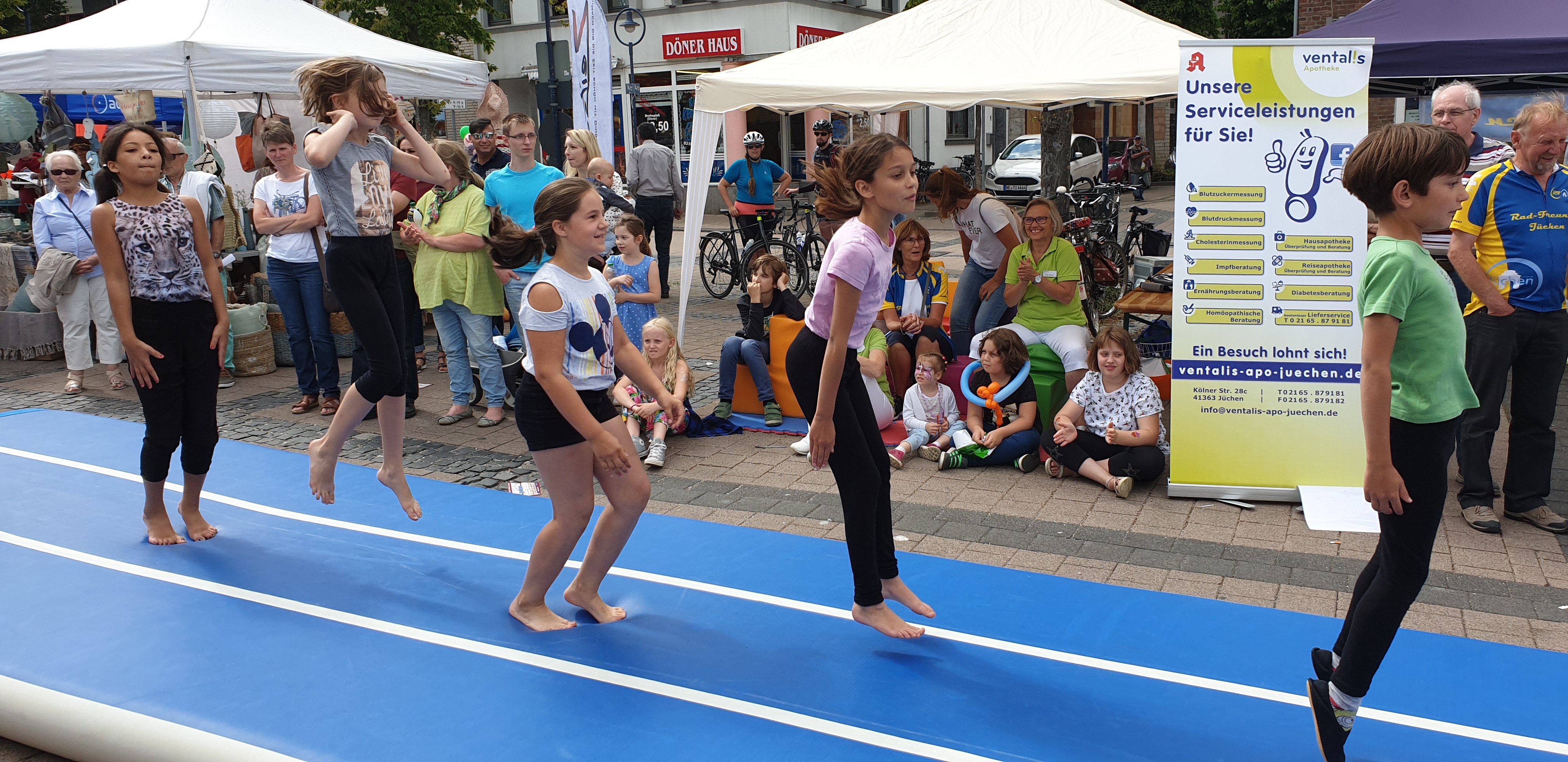 So findet alljährlich, organsiert über den Veranstaltungspartner Robin Pesch (Dreambig) der Stadtlauf Jüchens mit seinen vielen hundert Teilnehmer und der Flashmob der Jugendmusikschule statt. So wie die traditionelle Geschäfterallye, eine Reise durch teilnehmende Geschäfte. Interessierte Teilnehmer starten mit einer Stempelkarte und besuchen die darauf aufgeführten Geschäfte und lassen dort abstempeln. Ist die Karte voll wird die diese in eine auf der Bühne bereitstehenden Kiste eingeworfen und am späten Nachmittag bei der Preisverleihung zieht die Losfee die Gewinner der attraktiven Preise wie z.B. Tablets, Smartphones, Echo dots, usw.